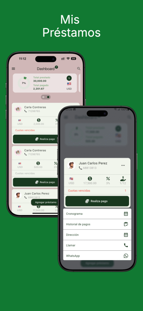 «Con la app Mis Préstamos he logrado llevar el control total de los préstamos que otorgo. Me encanta cómo puedo ver los cronogramas de pagos y el historial de cada cliente en segundos. Es como tener una oficina completa en el celular.»